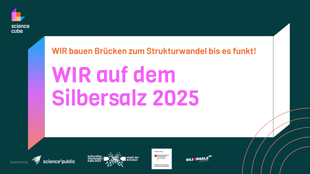 Im Rahmen des Science & Media Festivals SILBERSALZ 2025 haben wir erneut den Wissenschaftsmarkt mit etwa 20 Ausstellenden aus dem mitteldeutschen Revier unter dem Motto Strukturwandel und Wir* kuratiert. So haben wir das Thema Strukturwandel für 45.000 Festival-Besucher*innen sichtbar und erlebbar gemacht.