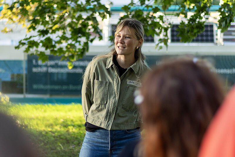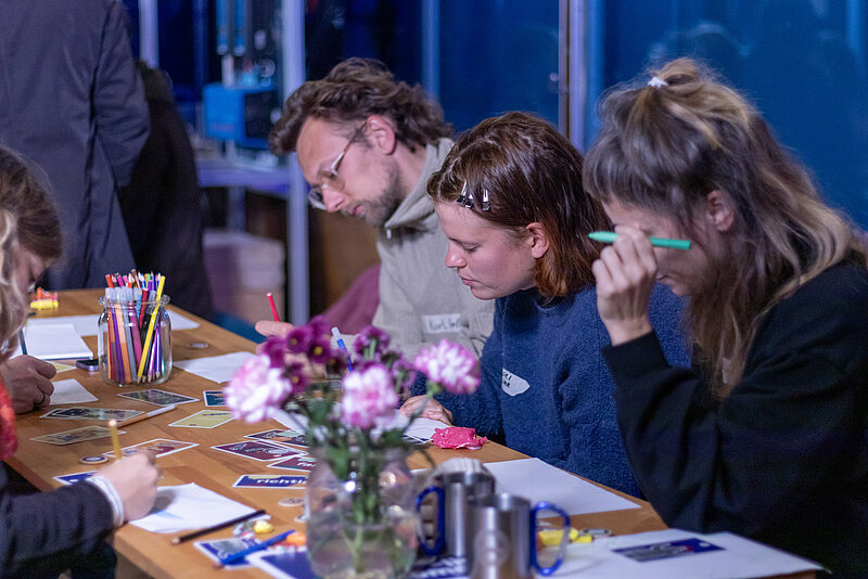 Wie reden wir heute über „den Osten“ – und wie können wir dabei einander wirklich zuhören? Diese Leitfrage stand im Mittelpunkt des ersten Spiel-Labor im Science Cube, das am 24. September 2025 an Bord unseres Bürger*innenforschungsschiffs Make Science Halle stattfand. Zwölf Personen folgten der Einladung ins Spiel-Labor, um gemeinsam das preisgekrönte Gesellschaftsspiel „Oh! wie Osten“ auszuprobieren. Entwickelt wurde es von der Designerin Jule Henschel, die dafür im Engagement-Wettbewerb „machen!2025“ ausgezeichnet wurde.