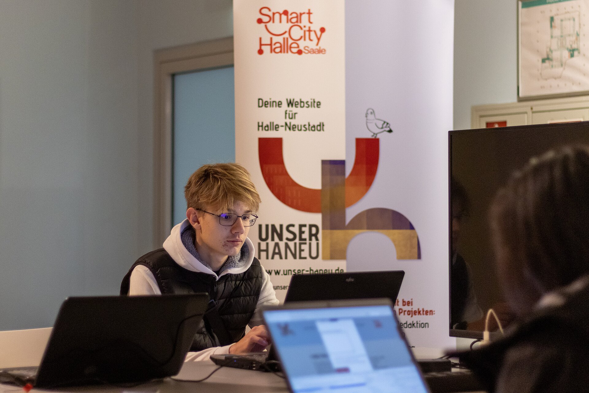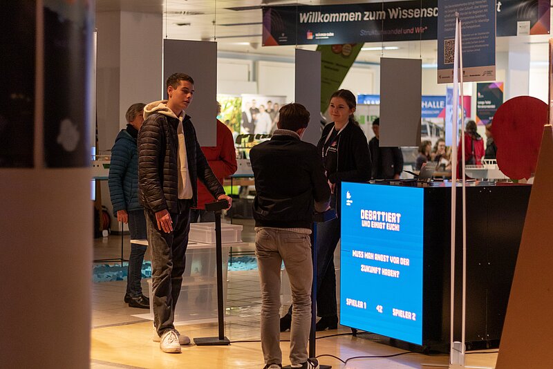 Im Open Space verwandelte sich der Wissenschaftsmarkt in der 1. Etage des ehemaligen Galeria Kaufhof in einen lebendigen Begegnungsort. Unternehmen, Hochschulen, Organisationen und Forschungsprojekte zeigten, wie Wissenschaft, Innovation und Gesellschaft gemeinsam den Strukturwandel gestalten. Die JobLounge am Freitag bot Bewerbungscoachings, Karriereworkshops und konkrete Einblicke in Ausbildungs- und Studienangebote. Parallel dazu luden Workshops wie „Legal Engineers – ein Beruf mit Zukunft?“, „Vom Denken ins Tun“ und der Hackathon „Digitale Stadtteilgestaltung“ zum Mitmachen und Vernetzen ein.