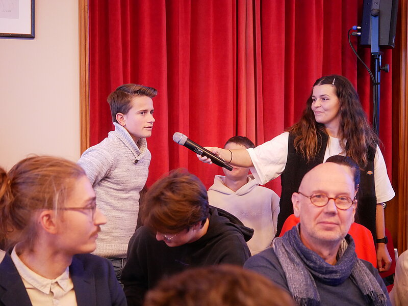 Am Freitag nahmen die Teilnehmenden an der spannenden Unterhausdebatte „Grün, aber unsozial?“ in der Leopoldina teil und diskutierten engagiert zu Themen rund um die Energiewende, soziale Gerechtigkeit und den CO₂-Preis. Eine anschließende Führung durch die historischen Räume der Leopoldina vermittelte faszinierende Eindrücke zur Geschichte der ältesten dauerhaft existierenden naturforschenden Akademie der Welt – besonders beeindruckend: der ehemalige Freimaurerraum.