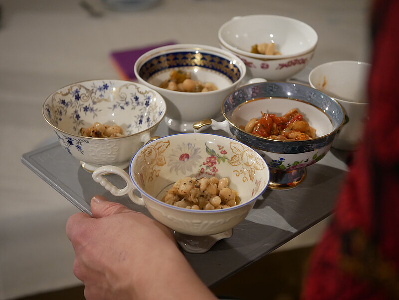 Neben leckeren Kostproben – Weiße Bohnen in rauchigem Cascabel-Chili-Öl und weiße Riesenbohnen mit gerösteten Kirschtomaten (nach Ottolenghi) sowie georgisches Bohnenmus – erfuhren die Gäste mehr über das europäische Forschungsprojekt INCREASE, das alte Bohnensorten wieder auf unsere Felder und Teller bringen will.