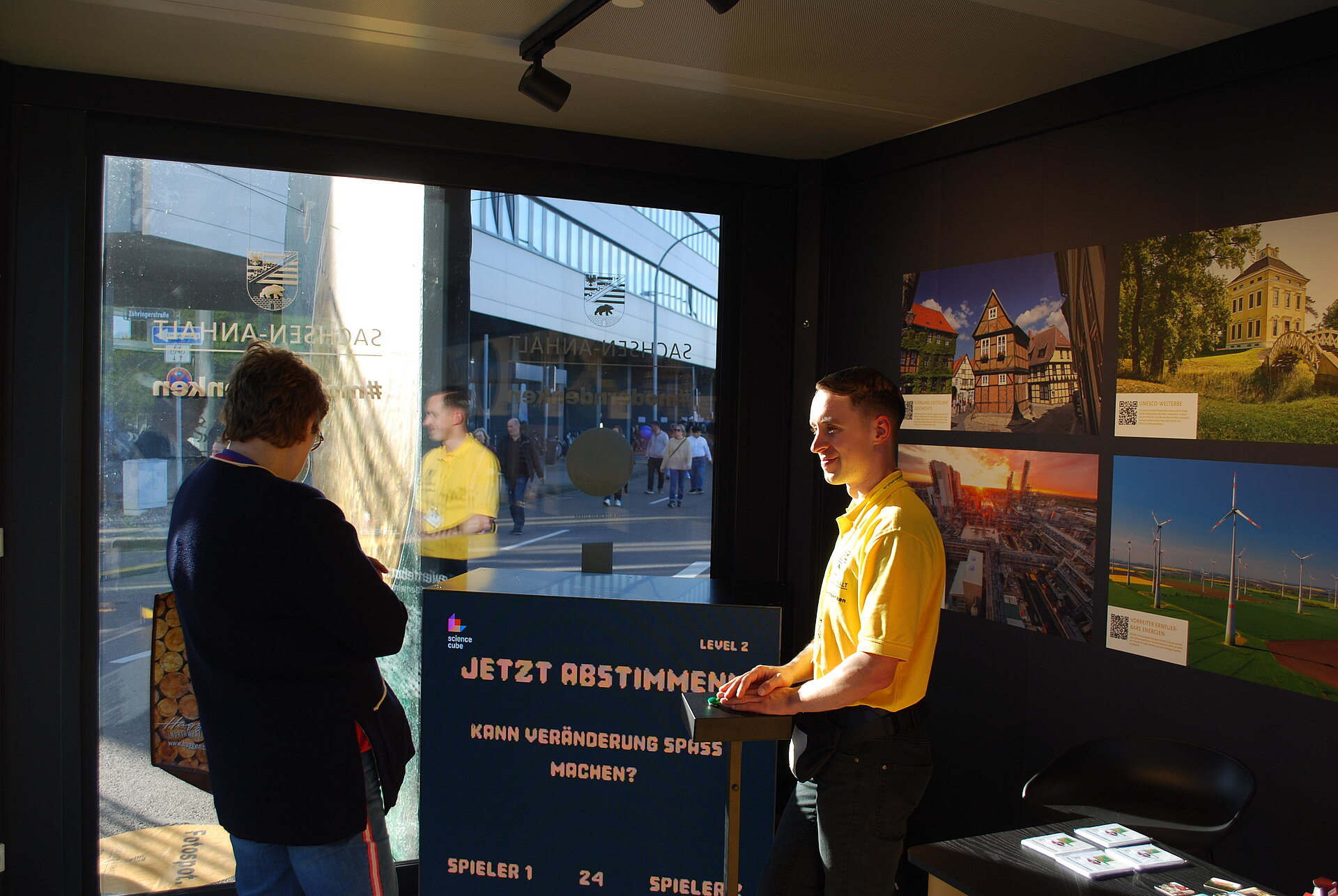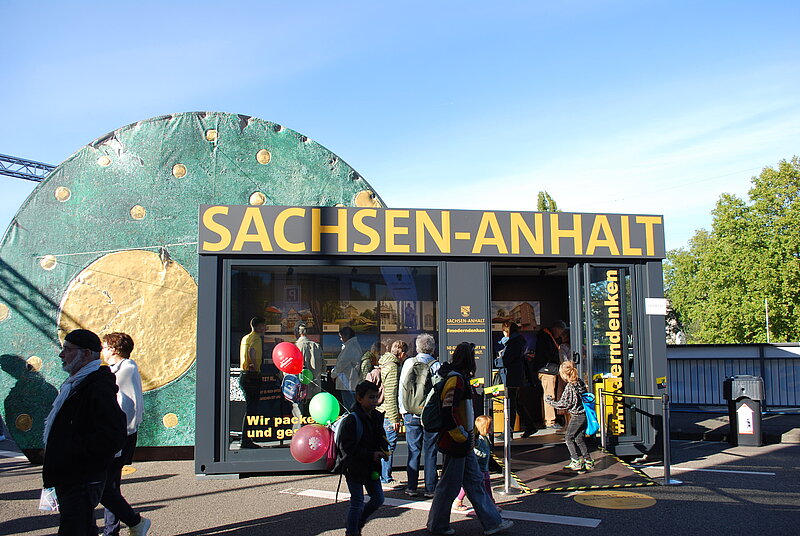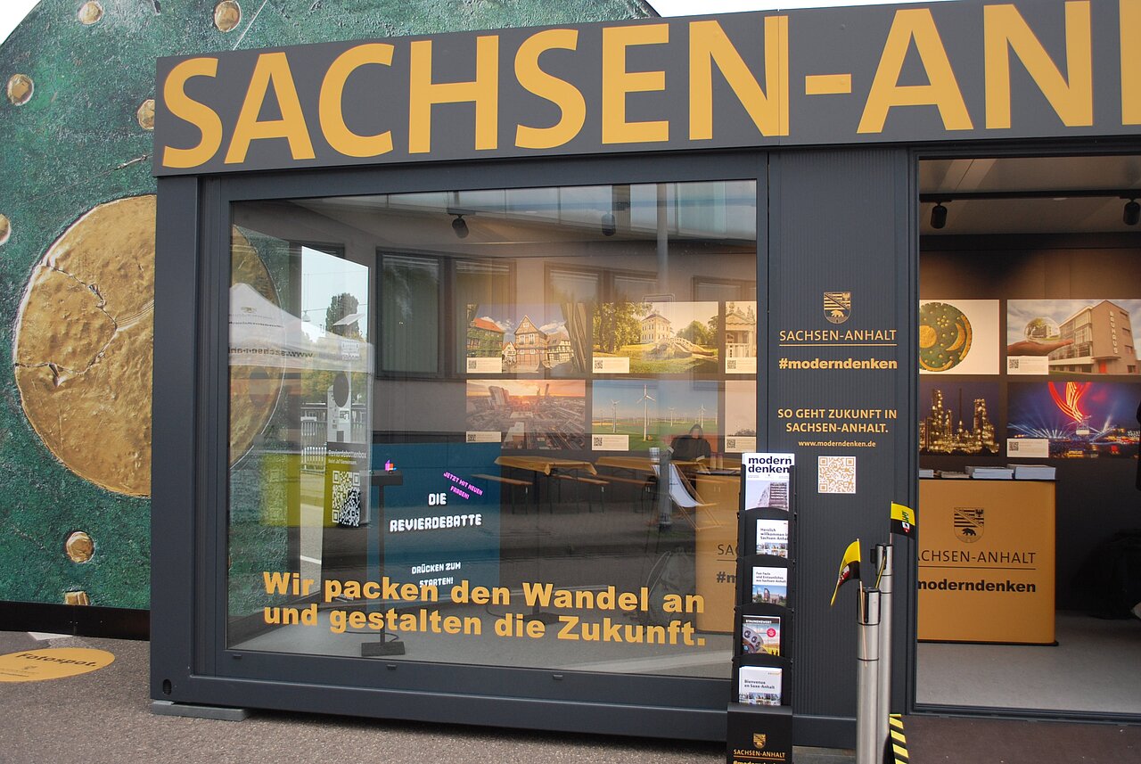 Vom 2. bis zum 4. Oktober war unsere Revierdebattenbox auf Einladung der Staatskanzlei des Landes Sachsen-Anhalts Teil der Feierlichkeiten zum Tag der Deutschen Einheit in Saarbrücken. Unter dem Motto „#modern denken” präsentierte sich Sachsen-Anhalt gemeinsam mit den anderen Bundesländern auf der sogenannten Ländermeile in der saarländischen Landeshauptstadt – und mittendrin die interaktive Revierdebattenbox als starkes Zeichen für Dialog, Beteiligung und Strukturwandel in den Regionen.