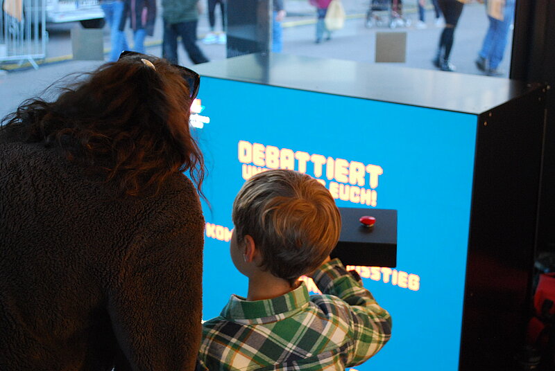 Manche Begegnungen sorgten für Schmunzeln: Ein kleiner Junge haute beim Thema „Kann Veränderung Spaß machen?“ mit voller Überzeugung und lauter Stimme auf den roten Buzzer „Nein!“. Ein anderes Kind entschied seine Antwort spielerisch per „Ene mene miste“. Und auf die provokante Frage „Brauchen wir wieder eine Mauer?“ kam der charmante Vorschlag: „Eine Mauer nach Frankreich – aber wir können eine Tür reinbauen.“