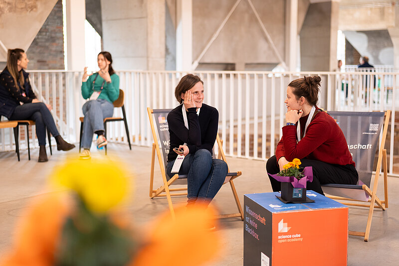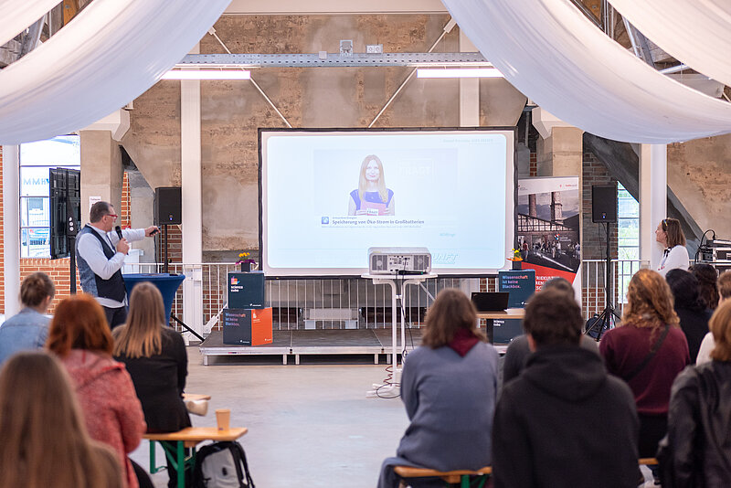 Der erste Tag stand ganz im Zeichen des „Perfect Match“: Wer arbeitet mit wem? Nach Impulsen aus Politik, Medien und Forschung stellten Forschende aus dem Mitteldeutschen Revier ihre 14 Projekte vor. Die 50 angehenden Wissenschaftskommunikator*innen wählten nach intensiven Gesprächen ihr Wunschprojekt aus, das sie im kommenden halben Jahr kommunizieren möchten.